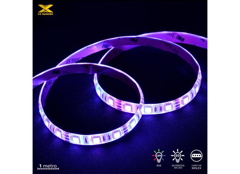Fita De Led Vx Gaming Rgb Com Controlador Conexão Molex 60 Pontos De Led 1 Metro - Lrm1