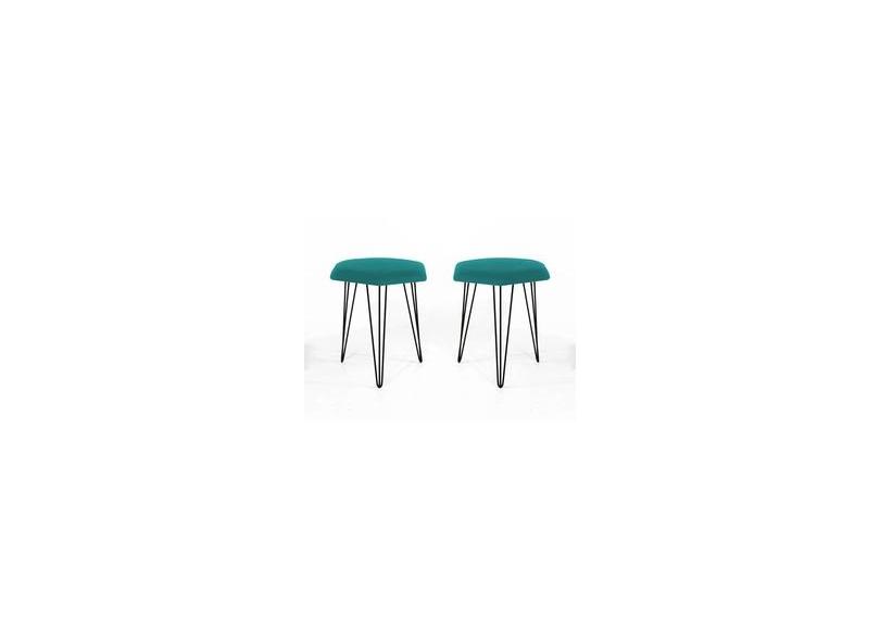 Kit 02 Puffs Decorativo Aramado Preto Mia Suede Azul Tiffany