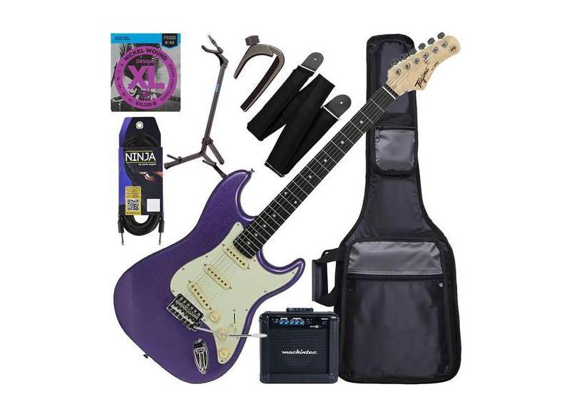 Kit Guitarra Elétrica Strato Tagima Woodstock Tg-500 Classic Roxo Metá