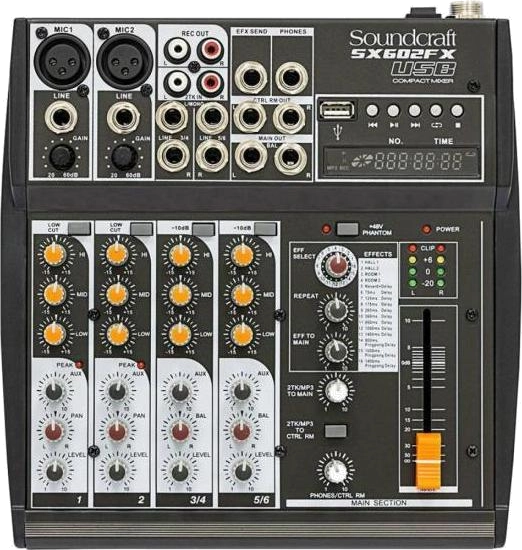 Mesa de Som 6 Canais USB SX602FX soundcraft