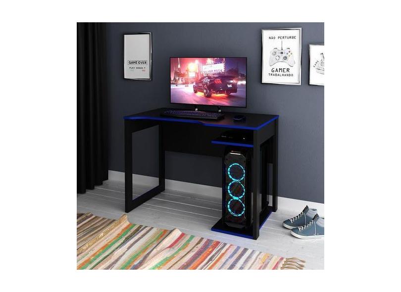 Mesa Gamer Escrivaninha Home Office Nicho Preto Azul - Tecno Mobili